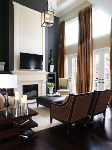 Interior design often involves window treatments. No room looks truly complete without beautifully constructed window treatments. Draperies soften the edges of the room and are a vehicle for colour as well. Whether we provide full scale, floor length drapes, top quality blinds or shutters, or valance treatments, we always access professional construction and sewing methods and beautiful, high quality fabrics, linings and hardware.